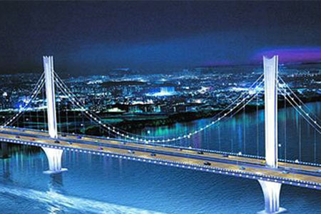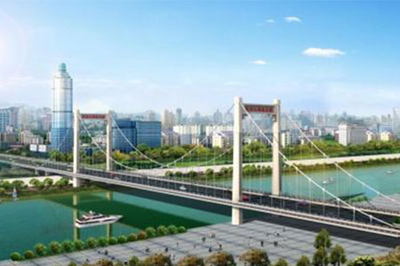 南昌洪都大橋,是單纜單索面雙獨(dú)柱自錨式懸索橋;跨越贛江北支的橋命名為英雄大橋,是...